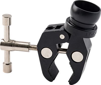 This mini clamp is ideal for tight spaces or when a smaller clamp is needed. Works on round and flat surfaces up to 2 inches. Comes with 3/4" ID mounting bead.