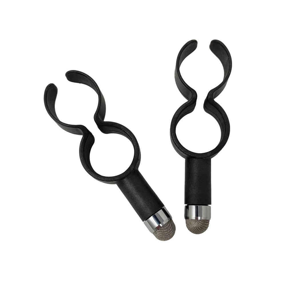 The Sixth Digit 2 is a wearable stylus that fits on your last two fingers allowing you to use touch screens and press buttons. It is can be used on touch screens like phones, tablets and appliance controls as it is made of a connective fiber-filled material.